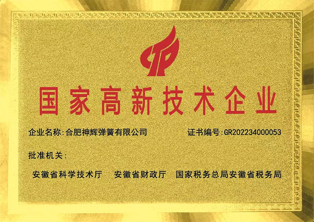 合肥神輝彈簧有限公司位于合肥市長豐雙鳳經(jīng)濟開發(fā)區(qū)雙墩路中南高科產(chǎn)業(yè)園43棟B座,我司專業(yè)生產(chǎn)、研發(fā)和銷售各類彈簧(壓簧、拉簧、扭簧、碟簧),以“質(zhì)量優(yōu)先,誠信為本,客戶至上”為經(jīng)營理念。公司擁有先進的精密電腦數(shù)控彈簧成型機、磨簧機、以及檢驗設(shè)備等。公司技術(shù)力量雄厚,有一支高素質(zhì)、會管理、懂業(yè)務(wù)的管理人才和熟練的技術(shù)人員隊伍。公司可根據(jù)用戶的要求,設(shè)計生產(chǎn)各類型彈簧。我們將以“先進的技術(shù)、優(yōu)良的品質(zhì)、合理的價格、周到的服務(wù)”滿足客戶的需求。